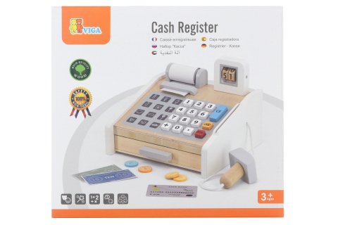 Drevená pokladňa o veľkosti cca 22 x 20,5 x 17 cm. Rozmery balenia cca 23 x 21,5 x 14,5 cm. Vek 3+