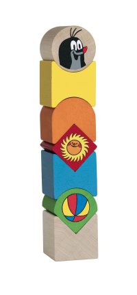 Drevené dieliky rôznych tvarov a farieb s potlačou vrstvíme na seba. Rozvíjame tak balančnú predstavivosť dieťaťa a jeho vlastnú predstavivosť.
