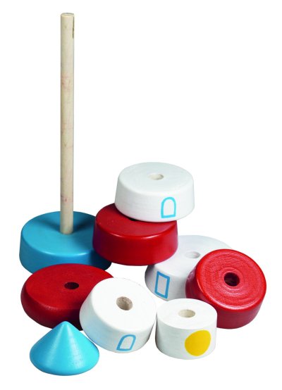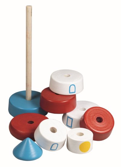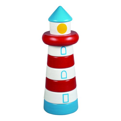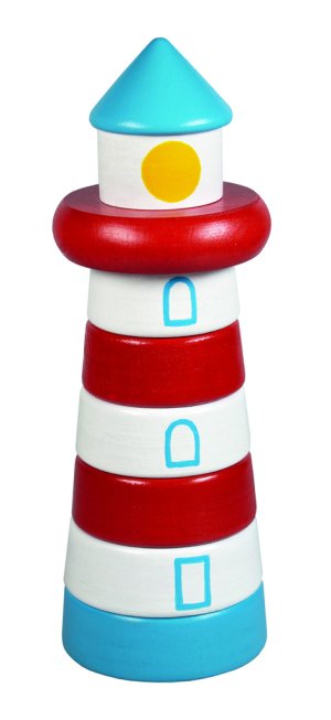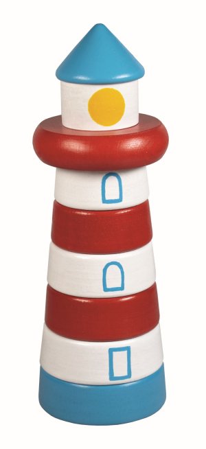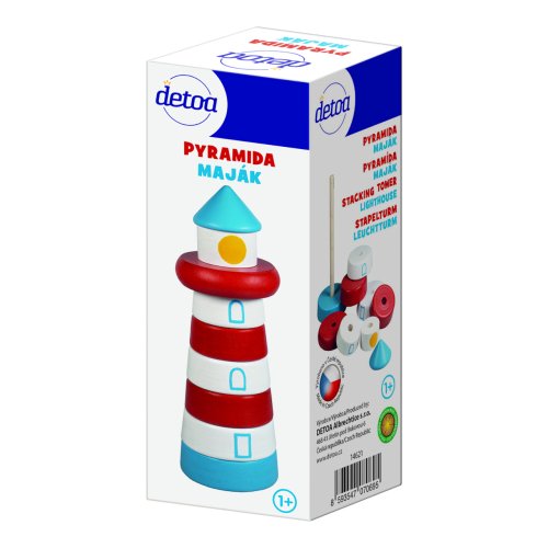 Drevená skladacia pyramída s motívom majáka, rozvíja predstavivosť, logické myslenie a motorické schopnosti dieťaťa.