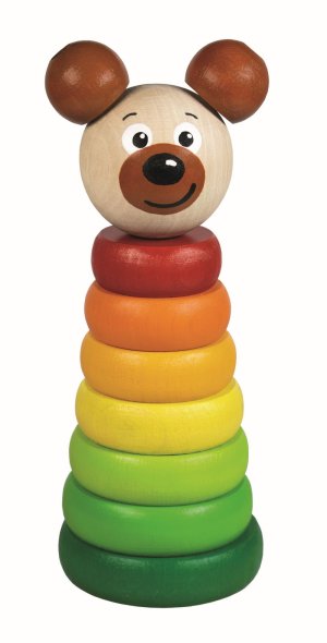 Drevená skladacia pyramída s motívom medi, rozvíja predstavivosť, logické myslenie a motorické schopnosti dieťaťa.
