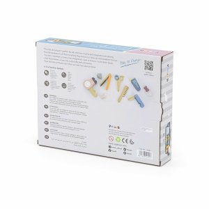 Celá sada je vyrobená z bukového dreva a natretá netoxickými farbami v tlmených farbách, ktoré upútajú pozornosť a podporia hru a zároveň poskytnú veľa zábavy. Farby sú 100% bezpečné a spĺňajú bezpečnostné normy EN71 a ASTM.