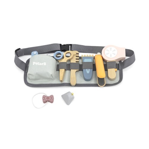 Sada obsahuje fén, hrebeň, žehličku na vlasy, nožnice, 2 roztomilé gumičky, holiaci strojček na fúzy, britvu a nastaviteľný opasok so sponou.