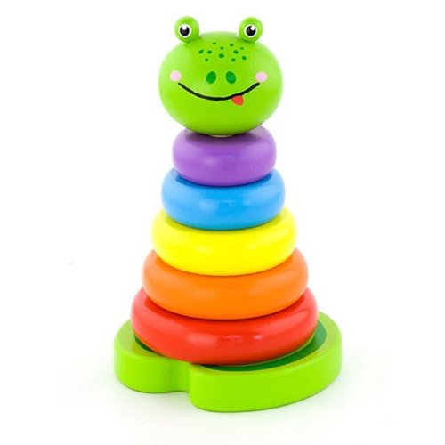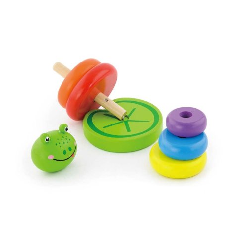 Drevená skladacia pyramída žabka o rozmere cca 10 x 18 cm. Rozmery balenia cca 20 x 12 x 12 cm. Vek 2+