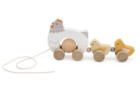 Drevená ťahačka-Sliepočka s kuriatkami. Rozmery balenia 36x20x6,5 cm. Vek 18m+