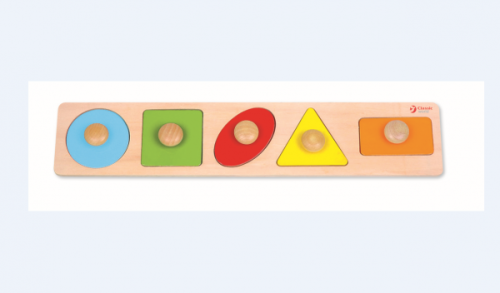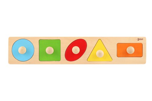 Vkladačka pre najmenších - geometrické tvary. Vhodné pre deti od 1 roku. 5 rôznych tvarov. Rozmery vkladačky 45 x 9 x 2 cm. Rozvíja motorické schopnosti dieťaťa.