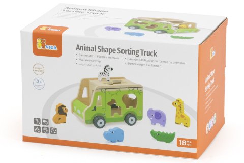Táto drevená sada obsahuje a 6 zvieratiek, ktoré deti vkladajú do vyrezaných otvorov. Rozmery balenia 23,5x15x15 cm. Rozmery auta 19x12, 2x12, 2 cm. Vek 18m+