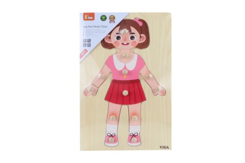 Krásna drevená vkladačka-dievča. Deti sa naučia zručnosti a zároveň časti ľudského tela. Vkladačka má 12 dielikov. Rozmery 30x45x0,5 cm. Vek 18m+