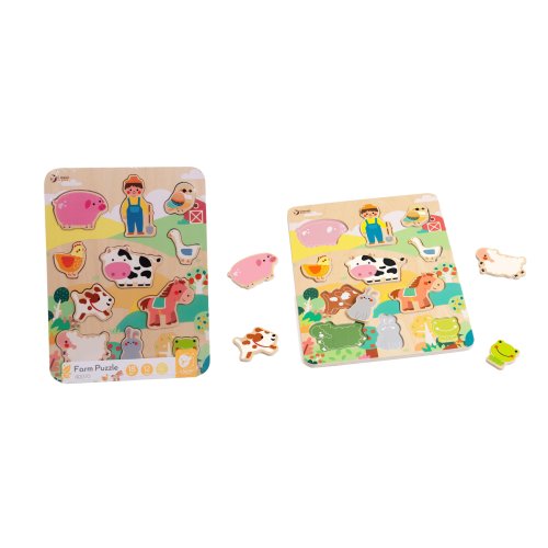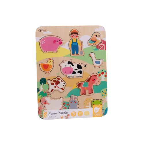 Objavuj svet zvieratiek na farme s krásnou drevenou vkladačkou! Farebne ilustrovaná doska a 12 veselých postavičiek – od koníka a kravičky až po farmárov – pomáha deťom rozvíjať jemnú motoriku, zrakové vnímanie aj logické myslenie. Každý dielik má pevné, zaoblené hrany a je prispôsobený pre malé detské ruky. Učenie hrou začína práve tu! Rozmer 21 x 30 cm Vhodné pre deti od 18 mesiacov