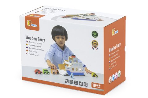 Drevená vkladačka loď o rozmere cca 25 x 19 x 12 cm na kolieskach, ide s ňou jazdiť a zároveň je vyklápacia z oboch strán, takže môžu autá jazdiť na loď a splav t. Balenie obsahuje 4 drevené autá voľný chod o veľkosti ca 6, 5 cma 2 drevené postavičky o veľkosti cca 4 cm . Rozmer balenia cca 24,5 x 18 x 12,5 cm . Vek 18 mes +