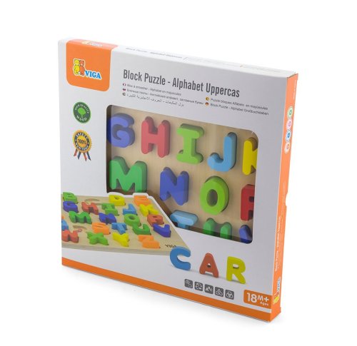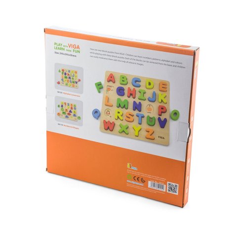 Vkladanka Abeceda na podložke od spoločnosti Viga je ideálnym darčekom, ktorý poteší každé dieťa. Táto funkčná hračka vďaka výrazným farbám, trojrozmerným tvarom a obrázkom zabaví vaše dieťatko na dlhé hodiny. Deti musia správne priradiť drevené písmená abecedy k otvorom v podložke. Na každom otvore je obrázok, ktorý podnecuje detskú zvedavosť a uľahčuje priraďovanie písmen. Malé deti si tak formou hry precvičujú manuálnu zručnosť a zároveň sa učia písmenká.
