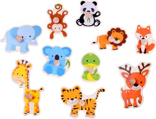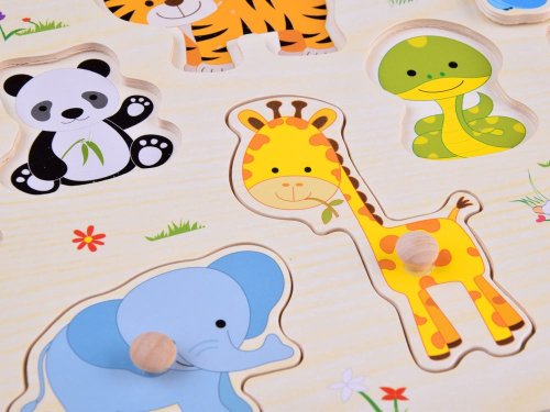 Rozvoj koordinácie oko-ruka, logického myslenia a predstavivosti, drevená podložka uľahčuje vkladanie a rámčeky zabezpečujú, aby jednotlivé dieliky držali na svojich miestach, pri hre má dieťa možnosť precvičovať reč napodobňovaním zvukov, ktoré dané zvieratko vydáva, pre ľahšie uchopenie má každý dielik úchytku.