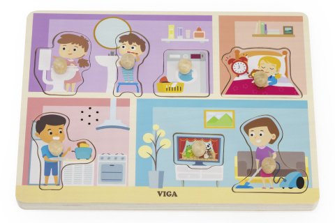 Drevená vkladačka zvuková činnosti. Napájanie na 2xAAA batérie, ktoré nie sú súčasťou balenia. Pri správnom vložení sa ozve zvuk daného obrázku. Rozmery 30x22x1, 5 cm. Vek 18m+