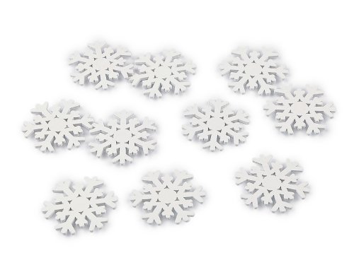 Drevené vločky [majú na spodnej strane samolepiacu penovú bodku.] Sú vhodné na prilepenie na vianočné vence a podobné dekorácie. Môžete nimi ozdobiť aj krabičky, kvetináče, hrantíky, pozvánky, rámčeky, sviatočnú tabuľu a pod.
