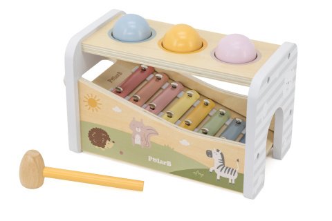 Drevená zatĺkačka s xylofónom. Rozmery 26x14x17. Rozmery balenia 28x16x15 cm. Minimálny vek 18m+