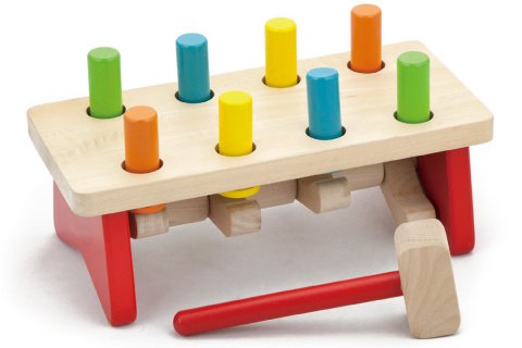 Drevená zatĺkačka s farebnými kolíkmi. Rozmery balenia cca 28x12,5x14 cm. Rozmery výrobku 26x12x13 cm. Vek 2+