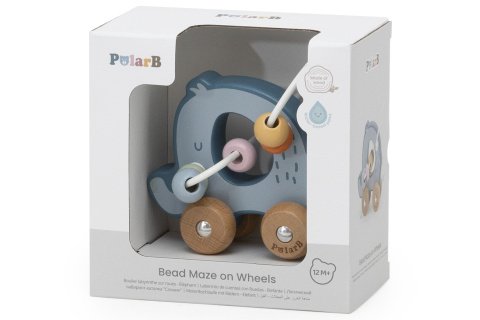 Táto roztomilá hračka s motívom slona v sebe spája korálkové bludisko a autíčko. Podporuje jemnú motoriku, koordináciu rúk a očí a kreatívnu hru, pretože malé ručičky vedú korálky alebo kotúľa autíčko. Balené v otvorenej krabici. Rozmery balenia 15x15x9 cm. Rozmery slona 10x13x8 cm. Vek 12m+