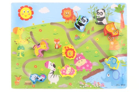 Drevené bludisko so zvieratkami. Rozmery cca 30 x 22,5 x 2,5 cm. Vek 3+