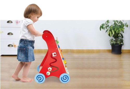 Chôdza s detským chodítkom uľahčuje udržanie rovnováhy pri zdokonaľovaní chôdze. Chodítko bolo navrhnuté s ohľadom na tých najmenších. Je výnimočne stabilná a zároveň bezpečná, vyrobená z bukového dreva najvyššej kvality. Hračka dokonale kombinuje funkciu chodítka a vzdelávacieho panelu. Na ktorom sú úžasné atrakcie. Hračka navyše rozvíja predstavivosť a kreatívne myslenie.