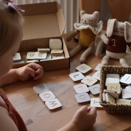 Sada drevených kociek, ktorá umožní dieťaťu hravú formu spoznať písmenká.