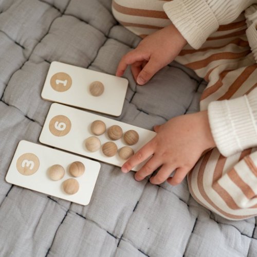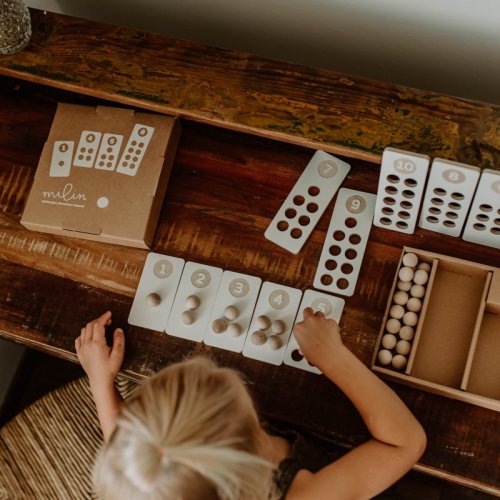 Sada drevených doštičiek a guličiek na učenie počítanie od 1 do 10.
