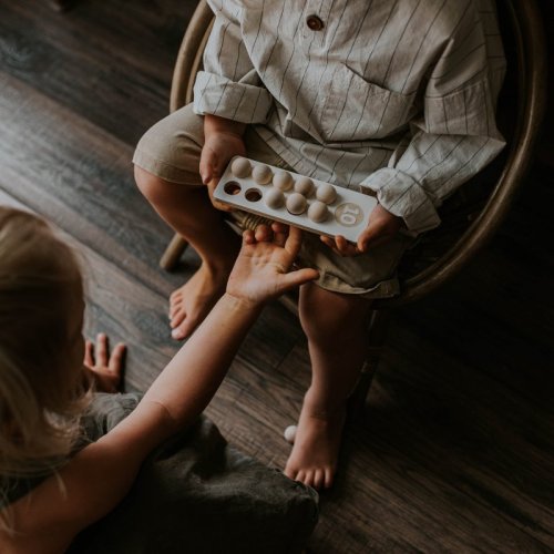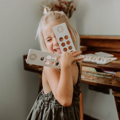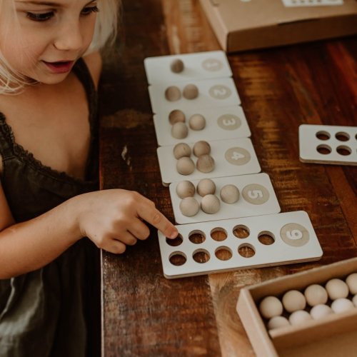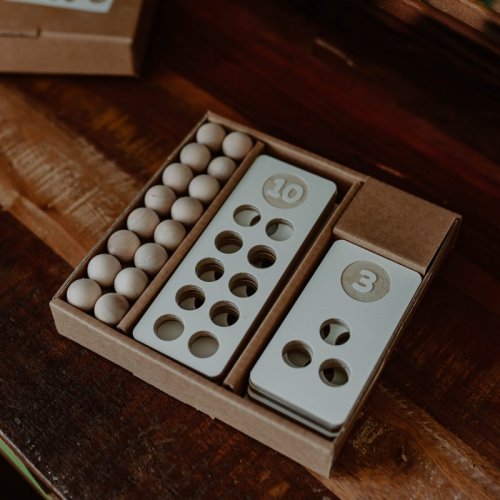 • úlohou je usadiť príslušný počet drevených guličiek do dierok