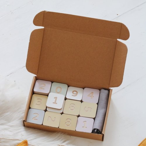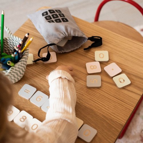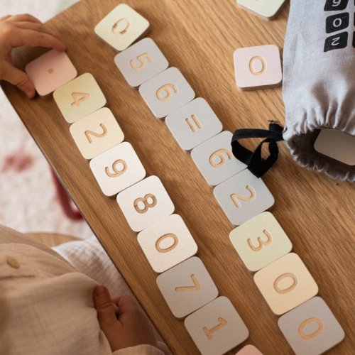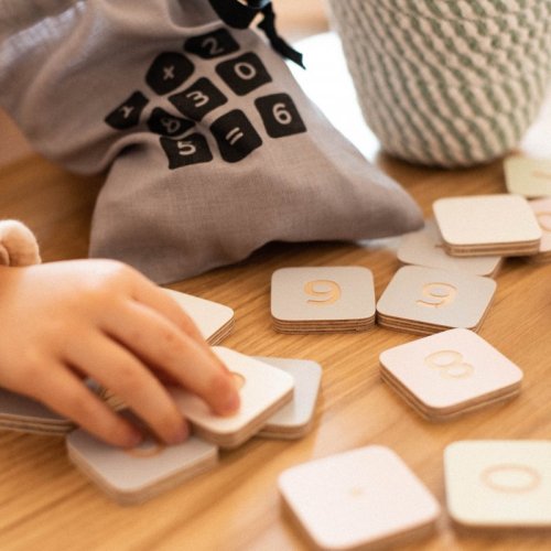 Sada drevených kociek, ktorá umožní dieťaťu hravú formu spoznať číslice.