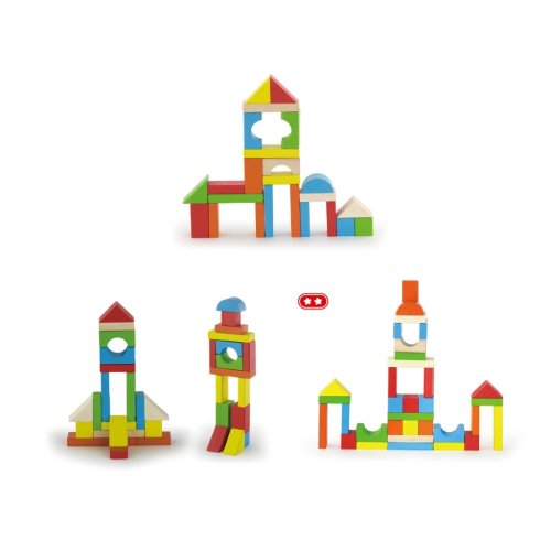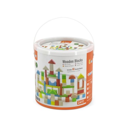 Krásne, farebné, drevené kocky vo vedierku Viga. Prináša 80 krásne farebných dielov aj pre tých najmenších staviteľov. Stavebnica vydrží dlhú dobu a dáva vášmu dieťaťu mnoho rokov zaujímavé a tvorivé hry. Kocky majú rôzne tvary, veľkosti, krásne farby. Nájdete tu tvary ako kocka, kváder, trojuhleník, valec, obdĺžnik, most, ad. Tento kýblik s kockami tak slúži ako motorická pomôcka, ktorá deti učia poznávať tvary a zaobchádzať s kockami. Hračka pomáha zlepšiť manuálnu zručnosť a obratnosť, učí dieťa rozpoznať tvary a farby, zapája a rozvíja zmysel pre pozorovanie. Hračka je vyrobená z lakovaného dreva. Našou prioritou je bezpečnosť a kvalita našich výrobkov, a preto farby použité na hračkách nie sú toxické a spĺňajú bezpečnostné štandardy (EN71 a ASTM). Pre deti od 2 rokov. Hračka je vhodná ako krásny darček pre našich najmenších.