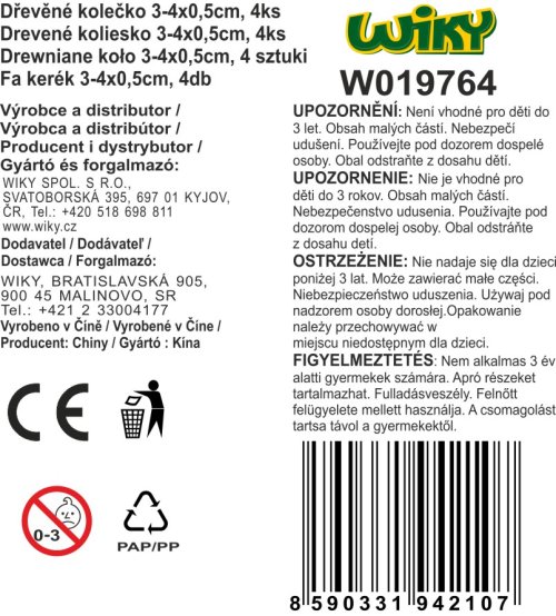 Drevené koliesko 3-4x0, 5 cm, 4 kusy