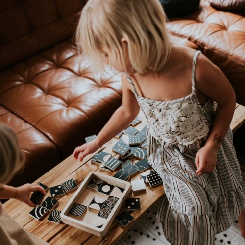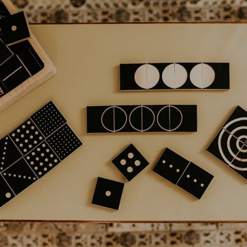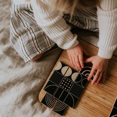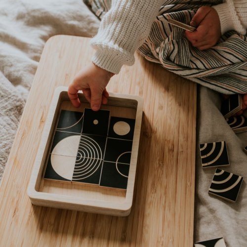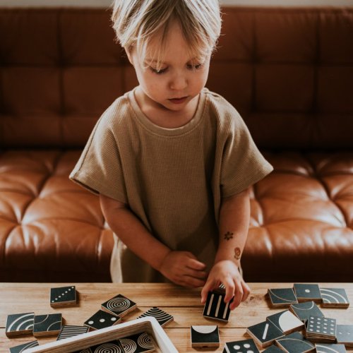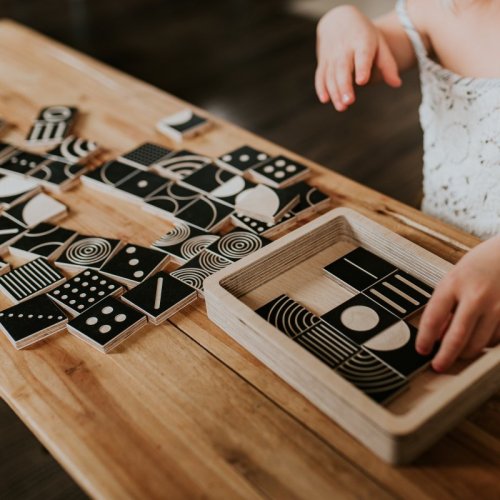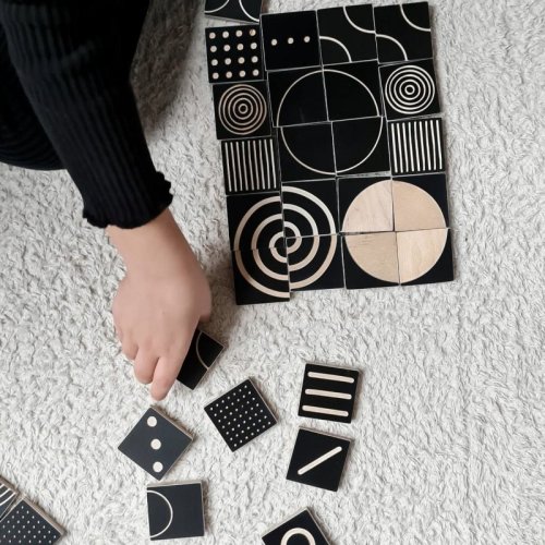 • krásna sada drevených kociek pre rozvoj zraku a logického myslenia