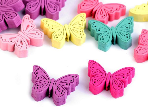 Farebný mix drevených korálikov poteší nielen korálkárky, ale aj deti. Detaily majú zvýraznené potlačou. Ich veľkou výhodou je ľahký materiál. Dajú sa skvele kombinovať s ďalšími drevenými korálkami, s guľatými, s diskami a pod. Môžete ich navliekať na lanko alebo gumičku či silón. Deti si môžu sami navliecť jednoduchý náramok z gumy. Korálky s motívom motýľa majú jednostrannú potlač, ostatné korálky sú obojstranné.