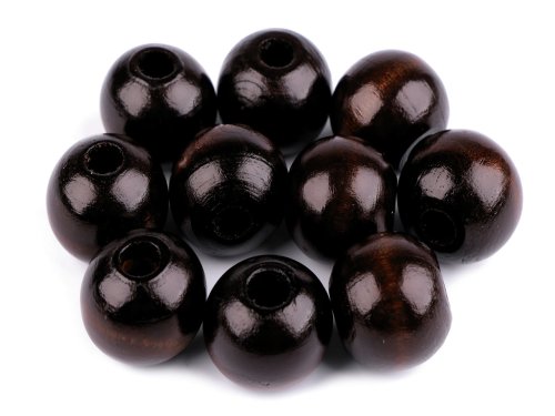 Veľké drevené korálky využijete na výrobu uch na tašky. Sú povrchovo lakované. Ich výhodou je široký prievlak, ktorý je vhodný na navliekanie na silnejšie materiály - napr. šnúry, voskované šnúrky, saténové stužky a pod. Drevené korálky sú veľmi ľahké, príjemné na nosenie. [Korálky sú vhodné aj pre kombináciu s pedigom a pedigovými šénami, morskou trávou a inými dekoračnými materiálmi.] Korálky sú vo vnútri mierne rozstrapkané, ale nemá to vplyv na ich funkčnosť.
