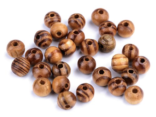 Drevené korálky s výraznou kresbou dreva sú lakované. Sú vyrobené z borovice. Hodí sa na výrobu náhrdelníkov, náramkov aj náušníc. Sú využívané na dámske aj pánske šperky. Sú ľahké, hodia sa aj na dozdobenie lapačov snov. Kvôli prírodnému materiálu sa môžu korálky medzi sebou farebne líšiť. V balení 10 g je cca 70 ks korálikov.