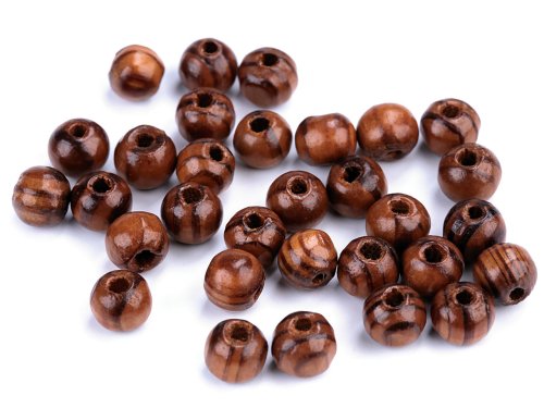 Drevené korálky s výraznou kresbou dreva sú lakované. Sú vyrobené z borovice. Hodí sa na výrobu náhrdelníkov, náramkov aj náušníc. Sú využívané na dámske aj pánske šperky. Sú ľahké, hodia sa aj na dozdobenie lapačov snov. Kvôli prírodnému materiálu sa môžu korálky medzi sebou farebne líšiť. V balení 10 g je cca 70 ks korálikov.