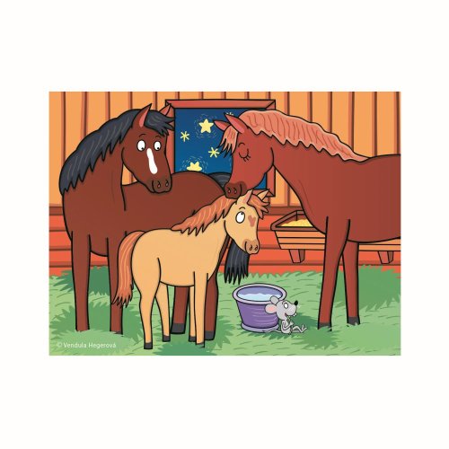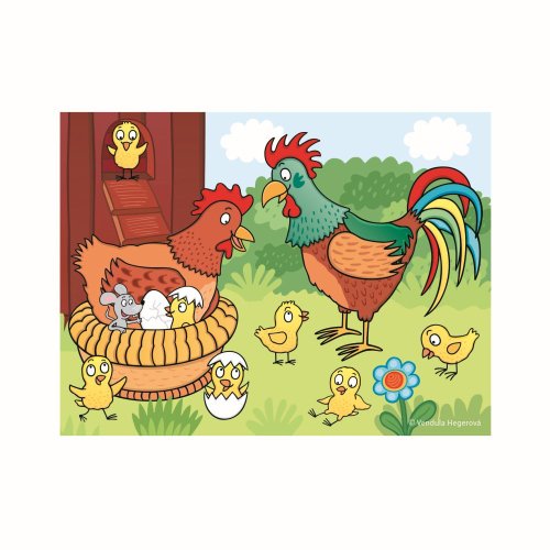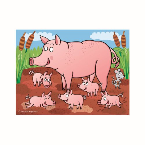 Detské drevené kocky, z ktorých je možné zostaviť 6 rôznych obrázkov. Balenie obsahuje 12 kociek. Vek: 3+