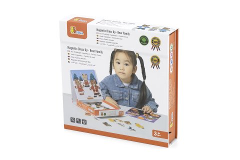 Drevené magnetixké obliekanie. Sada obsahuje 54 dielikov. Rozmery balenia cca 21,5x21,5x4,5 cm. Vek 3+