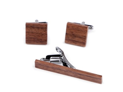 Manžetové gombíky s kravatovou sponou v drevenom prevedení skvele ozdobia každého muža. Drevený dekor štýlovo vynikne na manžetách košele aj kravate. Sú z kvalitného kovu, majú precízne prevedenie. Využijete ich k slávnostným príležitostiam aj na obchodné rokovania. Sada je zabalená v darčekovej krabičke Natural, je vhodným darčekom, ktorý každého muža poteší. Vzhľadom na to, že sa jedná o prírodné drevo, môžu sa gombíky aj spona v kresbe a štruktúre dreva mierne odlišovať.
