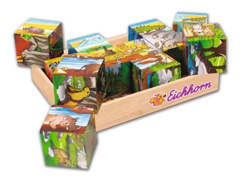 Eichhorn drevené obrázkové kocky - 6 motívov na 12 kockách, 6 predlôh pre ľahšie skladanie obrázku, rozmer 16 x 12 cm. Vyrobené z brezového dreva. Vyhodné pre deti od 3 rokov.