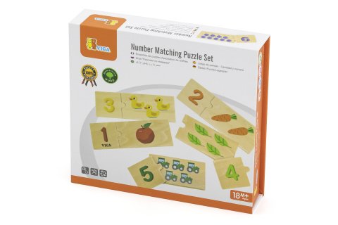 Drevené pexeso počítanie. Cieľom hry je nájsť k dieliku s číslom dielik, kde je rovnaký počet obrázkov. Rzmery balenia cca 20,5x19x4,5 cm. Vek 18m+
