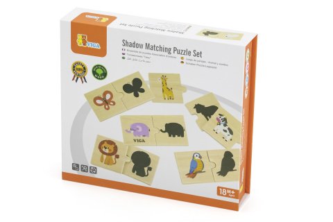 Drevené pexeso. Cieľom hry je nájsť obrázok zvieratka ak tomu tieň. Rozmery balenia cca 20,5x19x4,5 cm. Vek 18m+