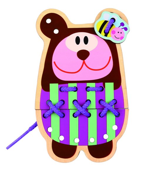 Sada obsahuje 5 zvieratiek, ktorým deti môžu za pomoci 5tich šnúrok prevliekať, povyšívať ich oblečenie. Prezliekanie krásne precvičuje jemnú motoriku, koncentráciu a trpezlivosť.