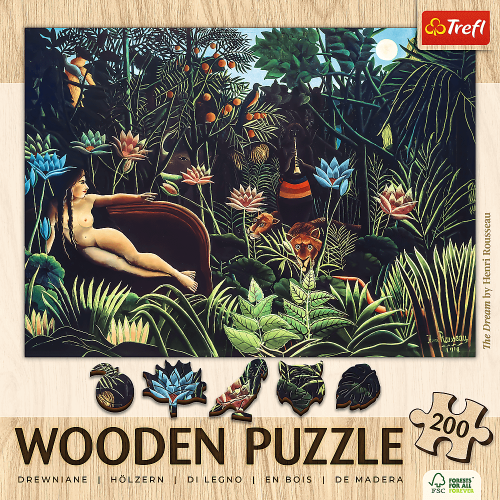 Drevené obojstranné puzzle TREFL s najznámejšími obrazmi od maliarskych majstrov. Puzzle je vyrobené zo silnej drevovláknitej dosky a vyrezané laserom, vďaka čomu sú okraje hladké a dieliky do seba ľahko zapadajú. - slávne umelecké diela - vysoká kvalita a precízne spracovanie laserom - časť dielikov je v klasickom puzzle tvare, časť je tvarovaná nepravidelne, 5 dielikov má špeciálne tvary súvisiace s obrazom - puzzle je obojstranné - z jednej strany obrázok, z druhej strany vzor - zadná strana puzzle so vzorom môžete ľubovoľne nafarbiť a vytvoriť tak vlastné umelecké dielo - ekologické balenie - úplne bez plastových obalov, dieliky sú balené v papierovom sáčku Rozmery balenia: 20 x 20 x 6 cm