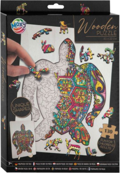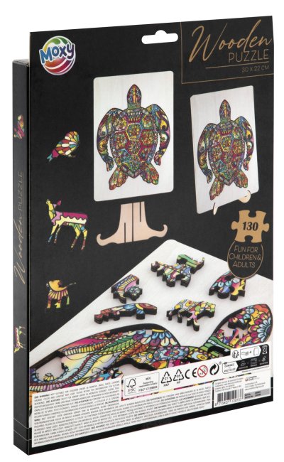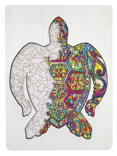 Drevené puzzle s motívom korytnačky. Obsahuje 130 dielikov. Rozmery balenia 22,5x32x2,5 cm. Rozmery zloženého puzzle 30x22 cm. Vek 3+ (odporúčané od 7 rokov)