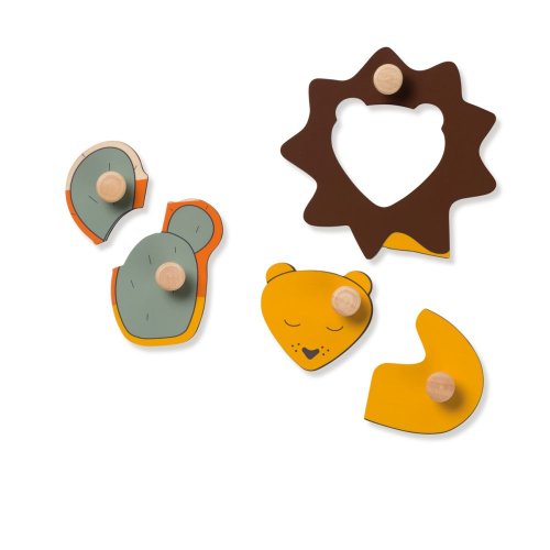 Drevená skladačka podporuje jemnú motoriku a hravé učenie koordinácie ruka-oko. S láskou navrhnuté puzzle sa skladá z drevenej dosky a dieliky v podobe zvieratiek. Vďaka praktickým gombíkom vaše dieťa ľahko uchopí každý kúsok. Uchopením a prilepením dielikov na miesto vaše dieťa vytvorí zvieratko a zároveň trénuje tvary, pamäť, jemnú motoriku, koordináciu oko-ruka a koncentráciu. Udržateľná hračka je vyrobená z dreva s certifikáciou FSC®. Vhodné pre deti od 1 roka.
