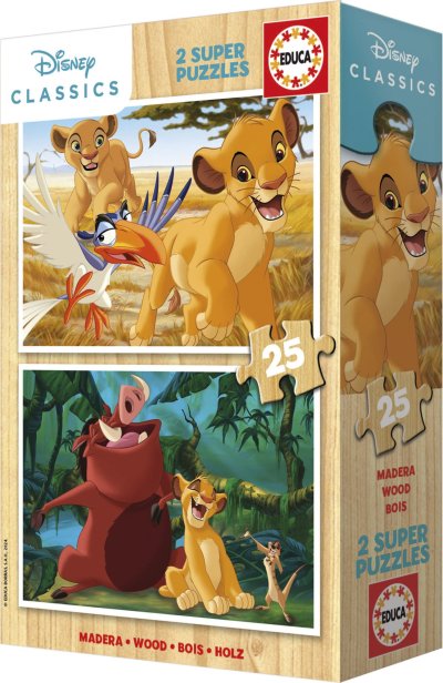 SUPER PUZZLE pre deti od španielskej firmy EDUCA: dve puzzle v každej krabičke vyrobené z kvalitného dreva, sú veľmi odolné a prírodné veľké dieliky pre ľahšiu manipuláciu – ideálne pre detské ručičky – čím menšie puzzle, tým väčšie dieliky jasné farby a atraktívne motívy, ktoré deti zaujmú na prvý pohľad známe a obľúbené postavičky z animovaných rozprávok Balenie obsahuje dve puzzle s rovnakým počtom dielikov a rovnakým rozmerom.
