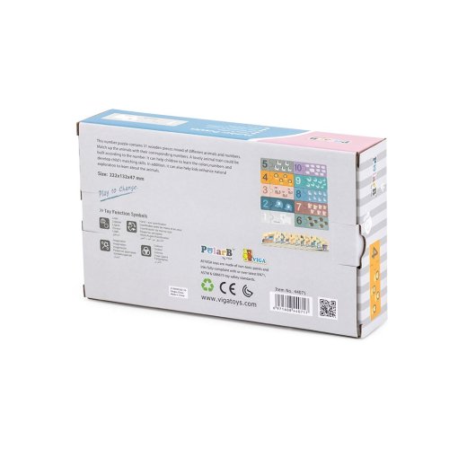 Toto puzzle obsahuje 31 drevených dielikov s rôznymi zvieratami a číslami.