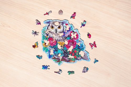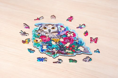 Zažite neporovnateľnú zábavu pri skladaní vysoko kvalitného dreveného puzzle s motívom tajomnej sovy od spoločnosti Ravensburger.