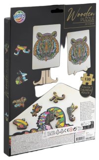 Úžasné puzzle s jedinečnými drevenými dielikmi o veľkosti 30x22 cm, každý dielik je unikátny a je v tvare rôznych zvieratiek, dieliky sa skladajú do doštičky, po zložení vznikne z malých zvieratiek/dielikov obraz jedného veľkého, súčasťou balenia je aj praktický stojan, aby bolo možné dokončenú skladačku patrične vystaviť. Zábava pre deti aj dospelých.