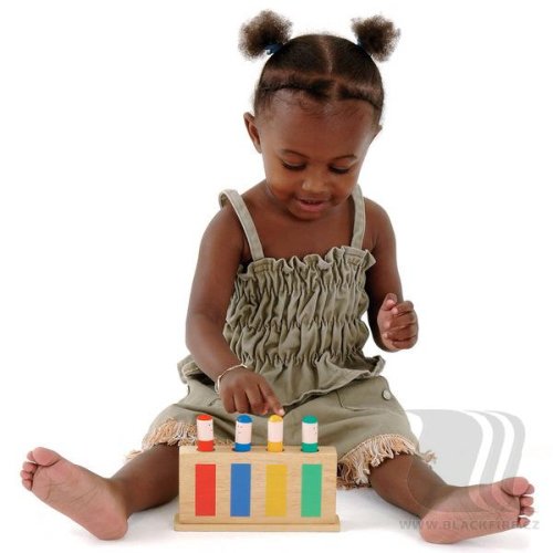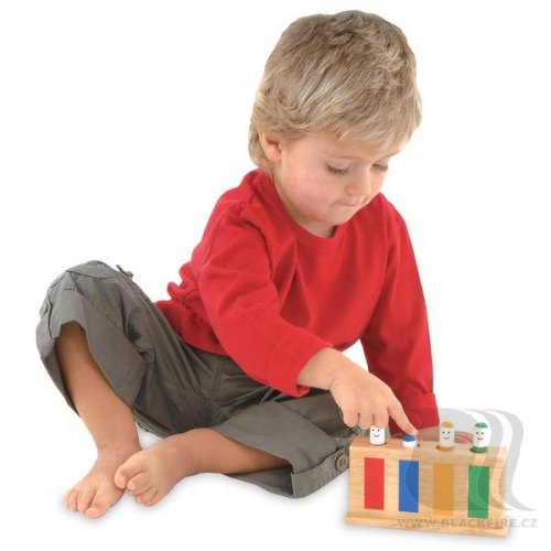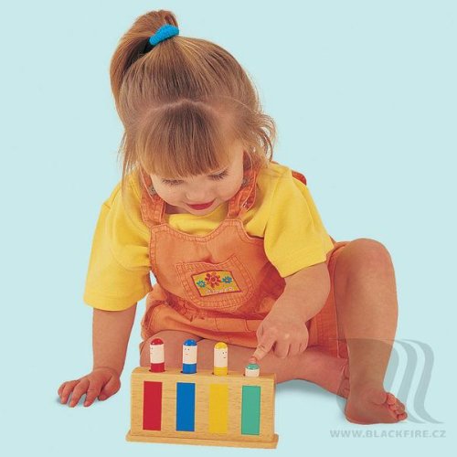 Zábavná drevená detská hračka obsahuje 4 štipce (figúrky), ktoré vďaka pružinke po zatlačení vyskočia. Vhodné pre zdokonalenie zrakovej a hmatovej koordinácie a vnímania kombinácie farieb. Vhodné pre deti od 12 mesiacov.