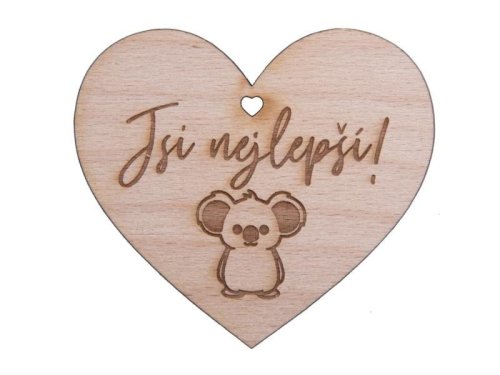 Malé drevené srdiečko s dierkou v tvare srdca a gravírovaným milým odkazom. Poslúži ako drobnosť k darčeku, ale aj ako samostatný darček.
