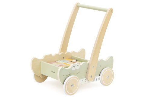 Drevený vozík s rozmermi cca 27,5 x 40 x 44 cm na kolesách, na ktorom možno voziť drevené kocky rôznych tvarov - sú súčasťou balenia. Rozmer balenia cca 42 x 30 x 18 cm. Vek 12m +